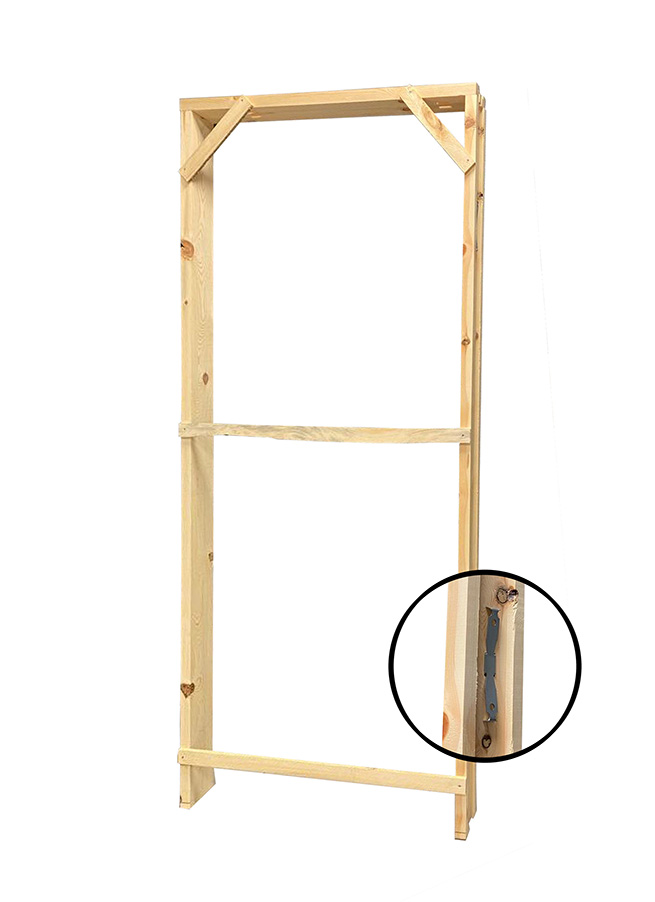 El premarco o precerco e la estructura de madera par la sujeción de la puerta en la pared compuerta de dos largueros y un cabezal.
